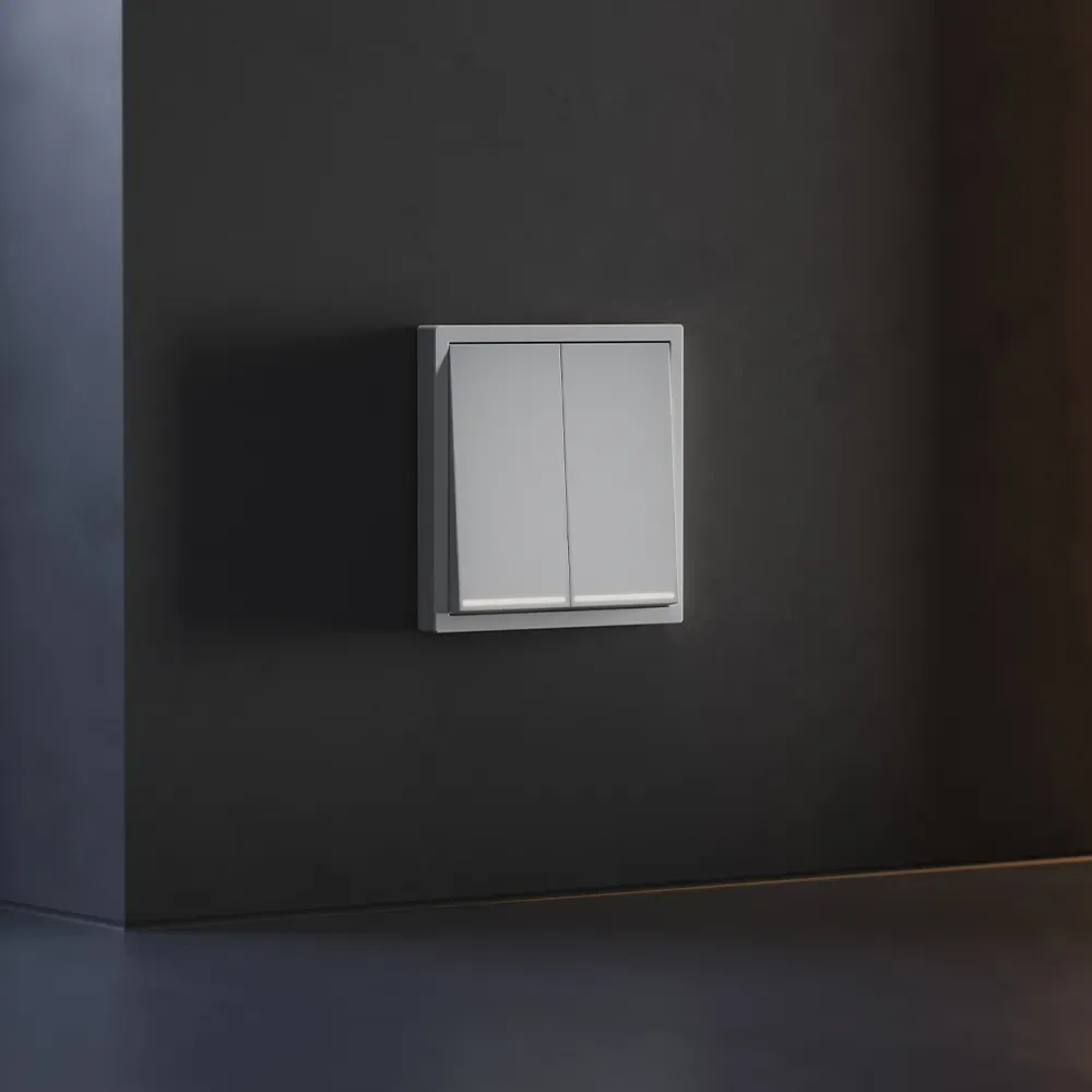 Двухклавишный выключатель VOLTUM S70 с подсветкой в цвете «серый» — это идеальное сочетание функциональности, современного дизайна и удобства использования в темное время суток. Благодаря встроенной светодиодной подсветке, вы легко найдёте выключатель даже при полной темноте, не нарушая атмосферы уюта в спальне, коридоре или детской.
